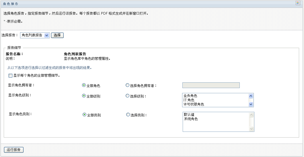 “角色列表报告”显示: