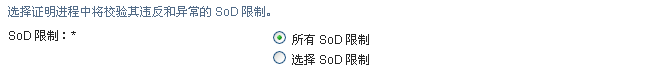 您必须至少选择一个 SoD 限制才能起动证明流程。但是,不要求您必须选择 SoD 限制才能保存请求。
