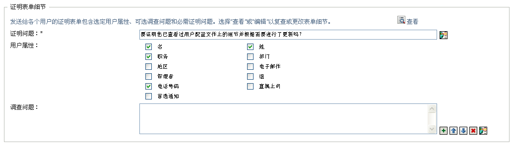 (可选)在字段中,可包含证明者可在证明流程的执行期间回答的一个或多个问题。不要求证明流程包含调查问题。但是,如果包含调查问题,证明者可以选择回答这些问题。
