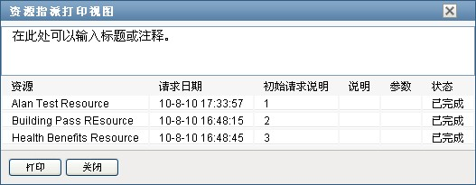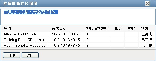 User Application 会在单独的窗口中显示资源指派列表的可打印版本: