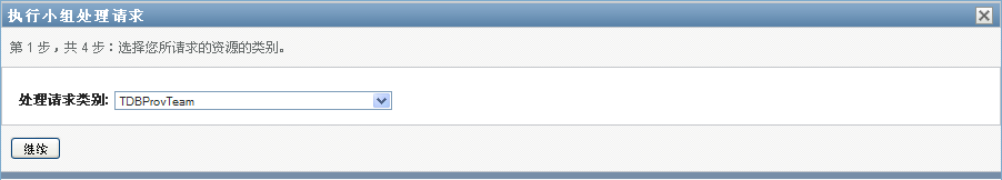 “执行小组处理请求”页面会显示您可以请求的处理列表。该列表只包含小组管理者可发起请求的那些处理。