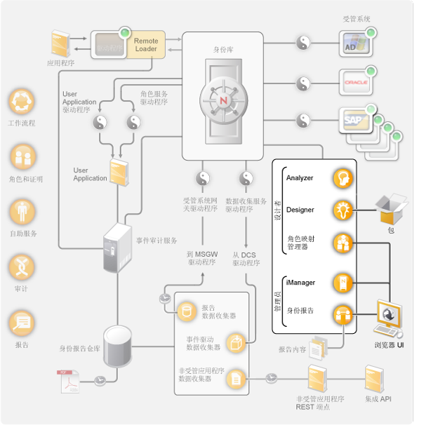 使用 Designer 可在脱机环境中设计、创建和配置 Identity Manager 系统,然后将更改部署到在线系统。Designer 还提供了包管理功能,用于预配置和自定义 Identity Manager 驱动程序策略。在创建 Identity Manager 解决方案时使用 Analyzer 来分析、清理和准备数据以进行同步。