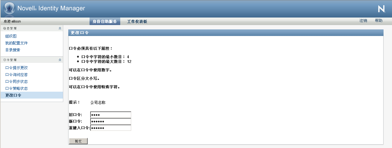不论何时需要更改口令,都可以使用此页面(前提是系统管理员允许您更改口令)。
