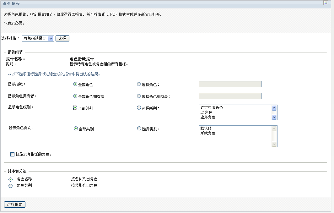 创建和查看“角色指派报告”: