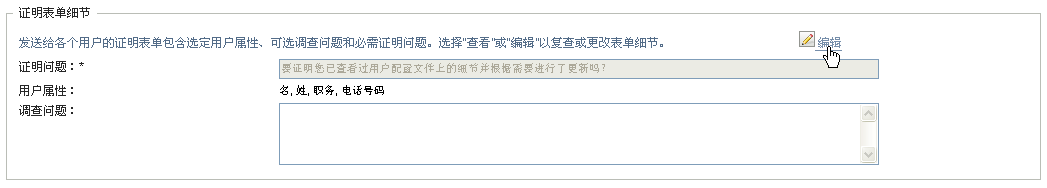 (可选)在字段中,可包含证明者可在证明流程的执行期间回答的一个或多个问题。不要求证明流程包含调查问题。但是,如果包含调查问题,证明者可以选择回答这些问题。