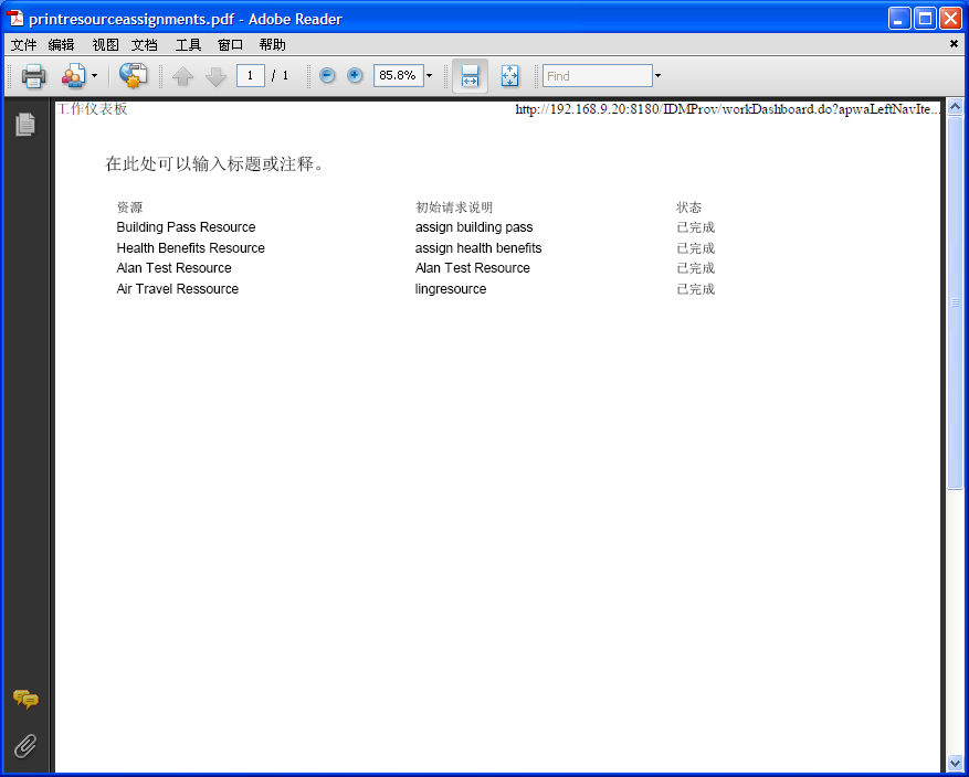 仪表板的部分允许您打印页面上显示的资源指派列表。屏幕上的内容与打印资源指派列表时的内容实际上是相同的,但打印输出仅包括屏幕上的文本。列或列中显示的任何图像都不会显示在打印输出中。
