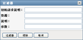 指定与资源指派关联的初始请求说明、资源名称、说明或参数的过滤字符串。