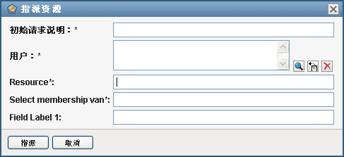 “添加资源”对话框现在会显示选定的资源,以及在资源请求表单中定义的所有其他字段: