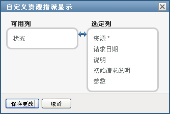 通过仪表板的部分,您可以选择和取消选择列,以及对任务列表显示内容中的列重新排序。列的选择和顺序由“自定义资源指派显示”对话框中的设置控制。在修改列的列表或对列重新排序时,您的自定义设置会与您的其他用户自选设置一起保存到身份库中。