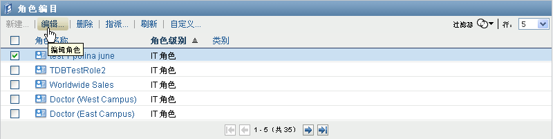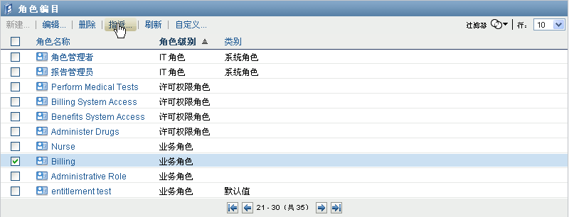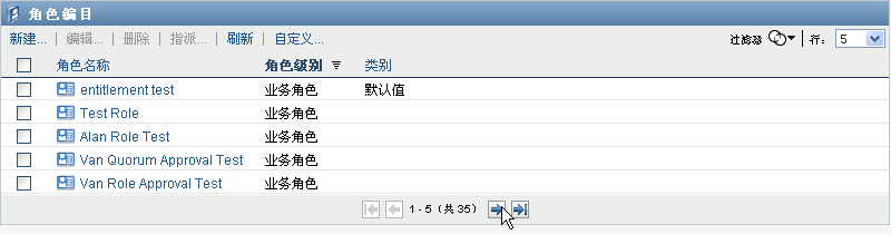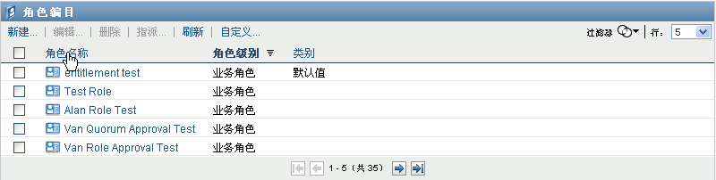 通过 Identity Manager 用户界面的选项卡上的操作,您可以查看以前在编目中定义的角色。通过它还可以创建新角色,以及修改、删除和指派现有角色。