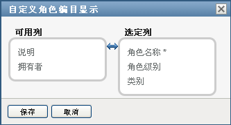 指定角色名称或说明的过滤字符串,或者在对话框中选择一个或多个角色级别或类别。