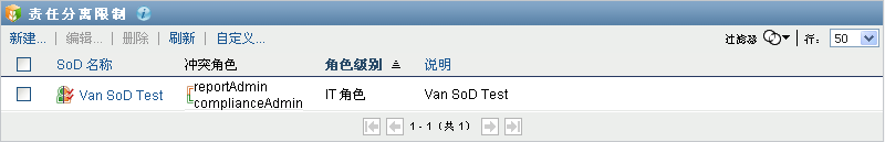 User Application 会显示当前在编目中定义的责任分离限制的列表。