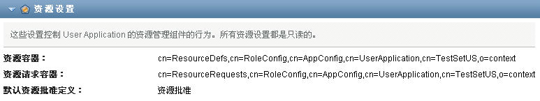 这些设置控制 User Application 的资源管理组件的行为。 所有资源设置都是只读的。