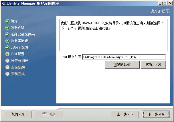 单击选择浏览 Java 根文件夹。或者,要使用默认位置,请单击恢复默认。