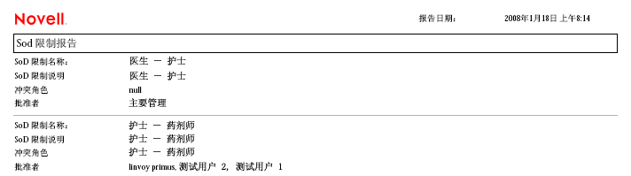 选择来显示所有 SoD 限制中任何未解决的违例和异常。或者,选择以将报告集中在单个 SoD 限制的违例上。