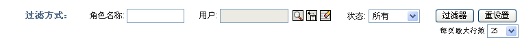 User Application 的“角色”选项卡提供过滤器,用于仅显示有兴趣查看的数据。可以通过使用“每页最大行数”设置进一步限制一个页面上显示的数据量。下面是部分过滤器示例: