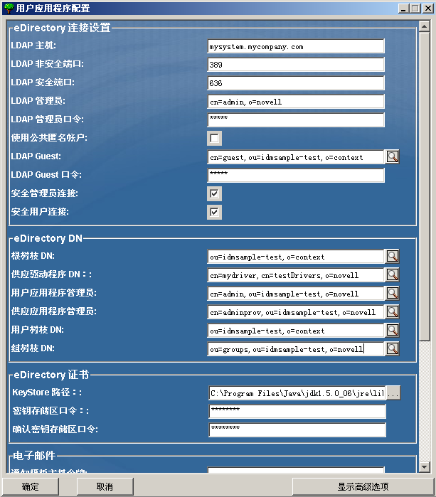 在 User Application 安装过程中,可以设置 User Application 配置参数。其中大部分参数都还可以于安装在 configupdate.sh 或 configupdate.bat 中进行配置,有关例外的项,参阅参数说明中的注释。 有关详细信息,请参阅部分 A.0, IDM User Application 配置参照 |
