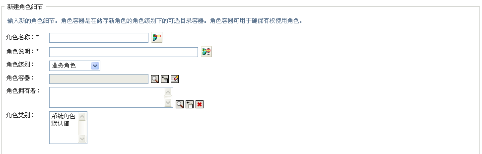 当角色说明显示在 User Application 中时使用的文本。与“角色名称”一样,可以将其翻译为 User Application 所支持的任意一种语言。有关详细信息,请参见表 1-1, 常用按钮。 |