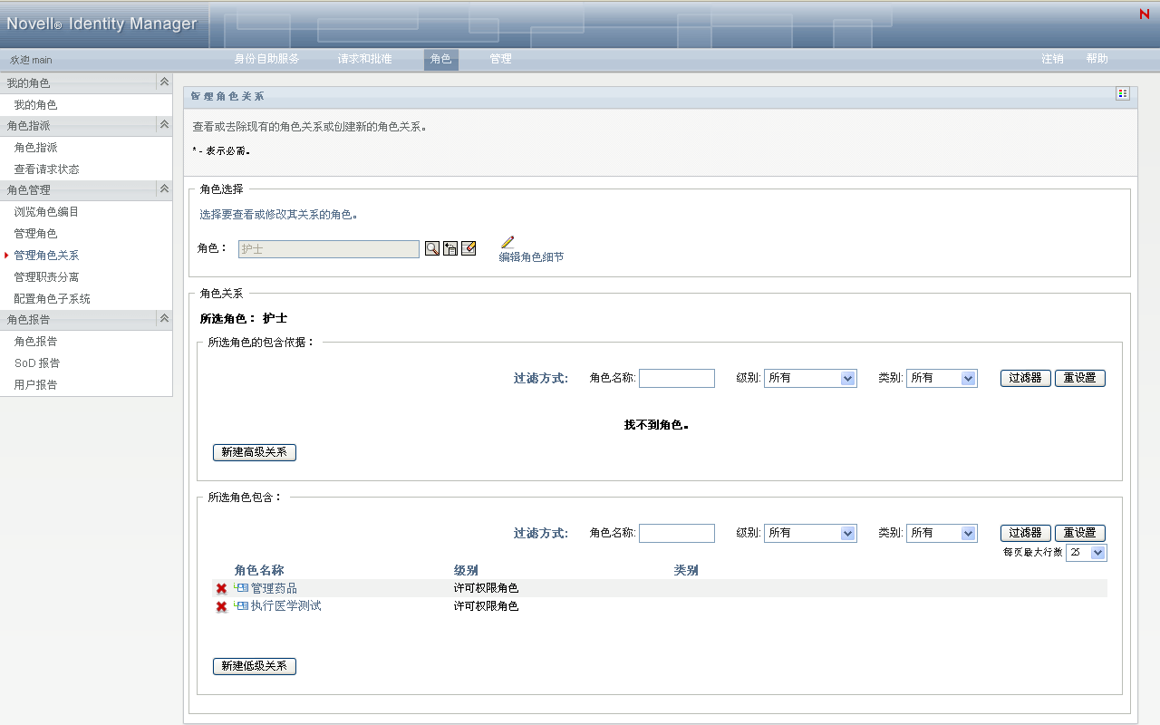 要找到想要添加或去除关系的角色,请按照部分 1.4.4, 常用用户操作中所述的方法使用或工具。