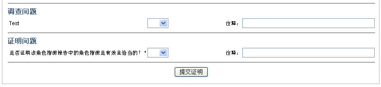 对于所有证明类型,表单显示一些控件,允许您回答必需的证明问题以及证明流程中包含的其他调查问题:
