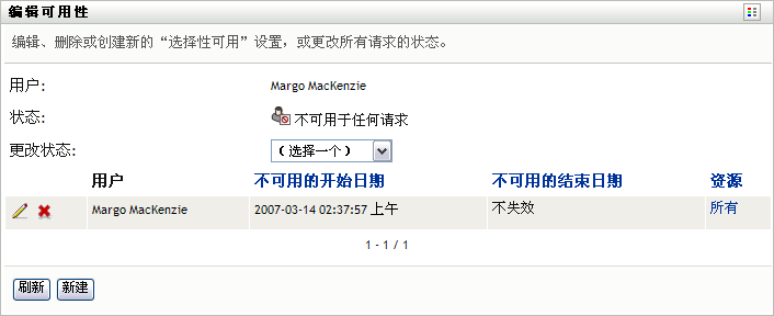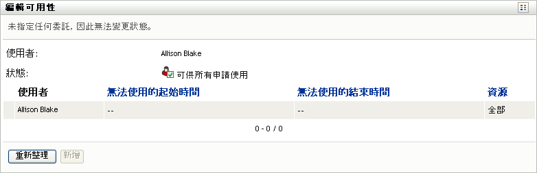 如果没有为您指派委托,User Application 将显示一条讯息,指示您不能在“编辑可用性”页上更改状态。