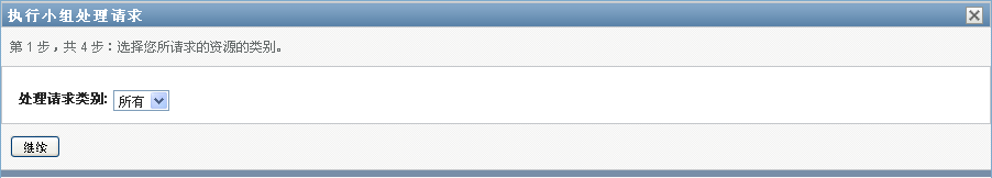 “执行小组处理请求”页面会显示您可以请求的处理列表。该列表只包含小组管理者可发起请求的那些处理。