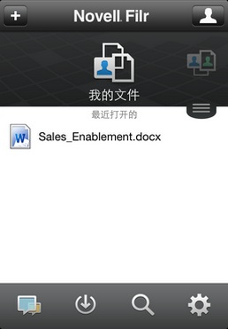 以下是 iOS 设备上的 Filr。外观与 Android 和 Windows 设备上的不同。