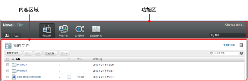 Filr 中的内容区域是显示大多数信息的地方。