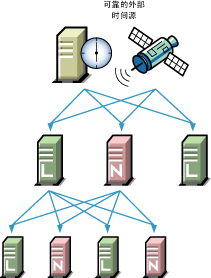 至少为层次结构的顶部位置标识两个授权的外部 NTP 时间源。