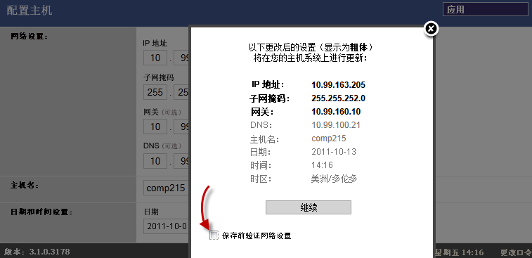 注:如果正在重配置设备(若您不是首次执行该过程),则系统将提示您校验新连接是否生效。如果检查失败,则还原 Forge IP 地址。