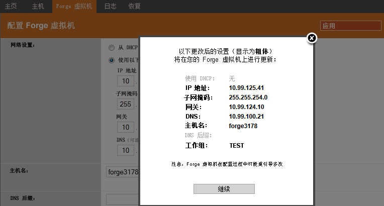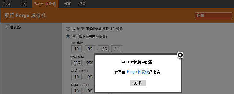 注:您必须首先配置设备主机,然后才能尝试配置 Forge VM。