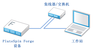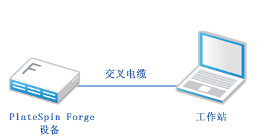 直接连接: 通过交叉电缆直接连接 PlateSpin Forge 设备和计算机: