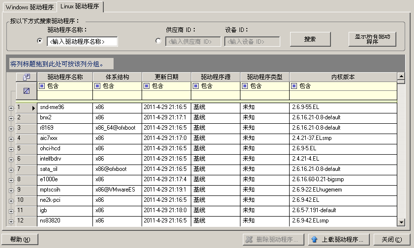 系统会将所选的驱动程序上载到驱动程序数据库。
