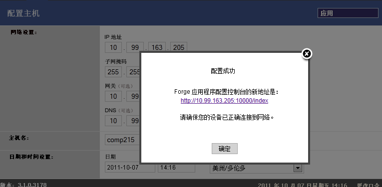 起动 Forge 设备配置控制台 (ACC):打开浏览器并转到 http://<Forge IP 地址>:10000。