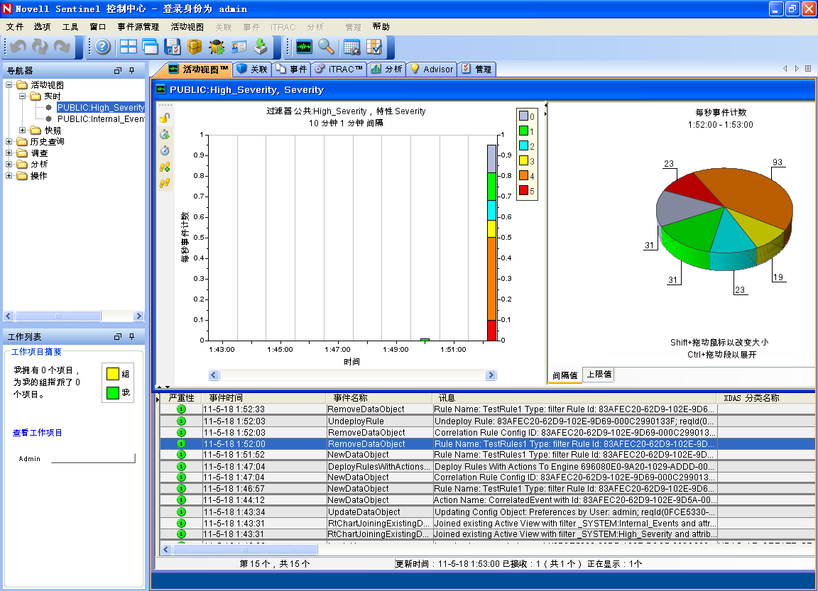 Sentinel 控制中心随即会打开,您可以看到选项卡,其中显示了通过和公用过滤器过滤出的事件。