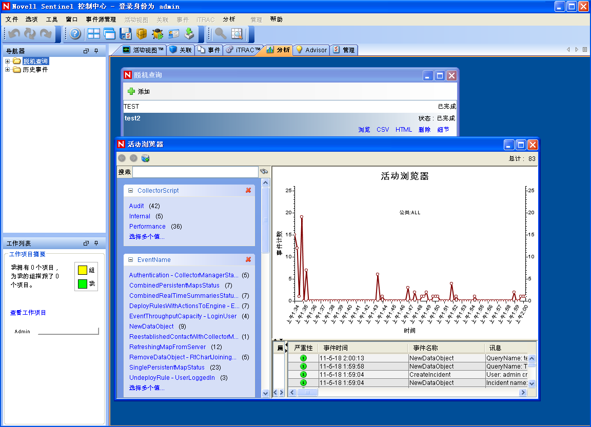 单击以在“活动浏览器”窗口中查看事件列表及相关细节。