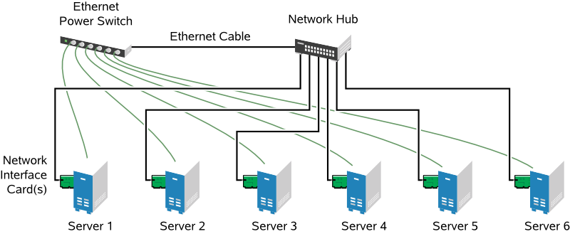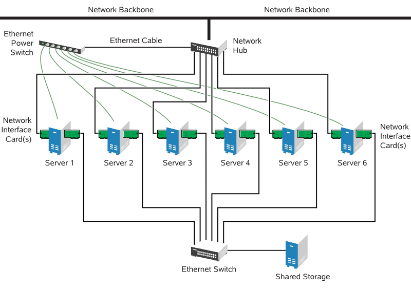 虽然多数群集都包括共享磁盘子系统,但也可以创建不含共享磁盘子系统的群集。下图显示了一个不含共享磁盘子系统的群集。