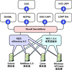 NSSO 2.1 在 Solaris*、Linux*、NetWare 5.x 和 Windows 2000/NT 上运行。