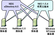 Solaris 和 Linux 服务器需要 NDS eDirectory 8.5 或企业版 8.5。 (NICI 在服务器安装期间自动安装。)