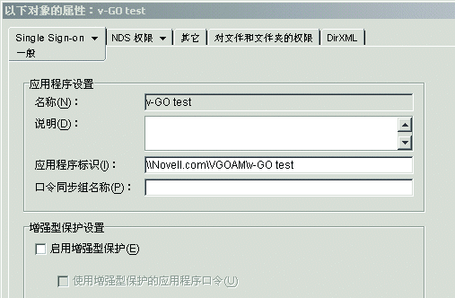 如果选中此复选框,则转至 nssoApplication 对象的“一般”页。 该页面显示所有应用程序类型都共用的设置(例如,“增强型保护”选项)。
