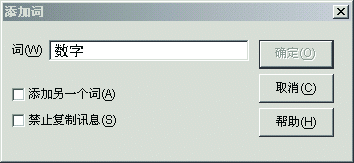 要一次添加一个词,请单击“添加”> 输入一个词 > 单击“确定”。 要一个接一个地快速添加,请选中“添加另一个词”复选框 > 单击“确定”。