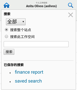 您不能在移动界面中创建高级搜索,但可以访问已保存的搜索,如使用保存的搜索中所述。