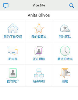 注:您的 Vibe 管理员可以停用对 Micro Focus Vibe 站点的移动访问。如果您无法按本部分中所述通过移动界面访问 Vibe,请咨询 Vibe 管理员。