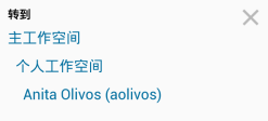 使用 Vibe 移动界面,可以查看工作空间树,因此您可以查看您当前所在位置的层次结构,并可快速导航到其他工作空间或文件夹。