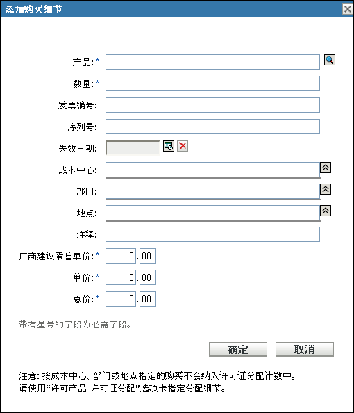 注:“地点”、“部门”和“成本中心”字段用于跟踪用户群,以便可以加总特定用户群内的许可证数。不过,此处输入的数量不会纳入到“用户群许可证分配”中。请使用许可产品的“许可证分配”页指定分配数量。