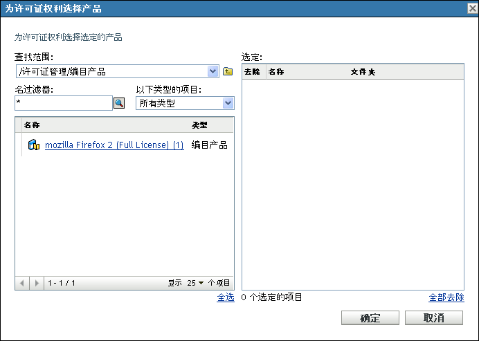 在“为许可证权利选择产品”对话框中,选择编目产品。