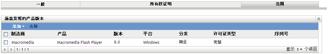 添加此权利涵盖的已发现产品版本:
