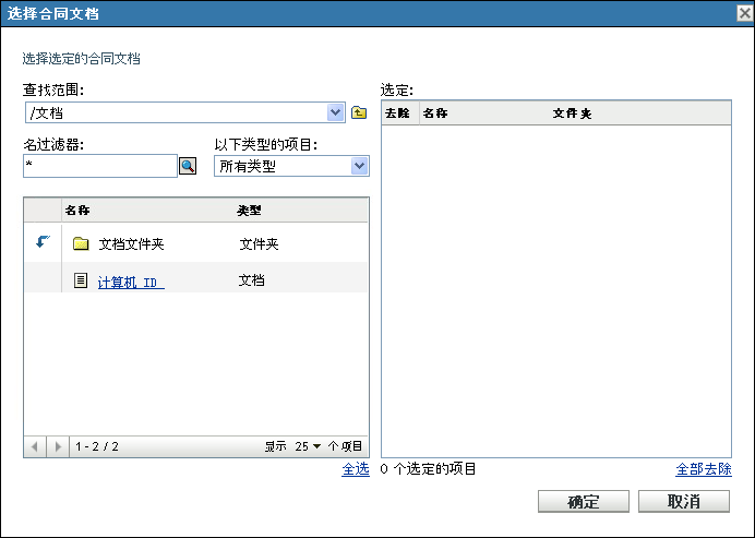 单击与要去除的文档关联的合同。