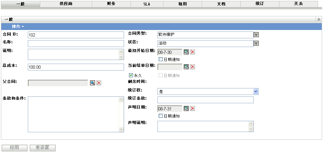 图 8-1 合同的一般选项卡