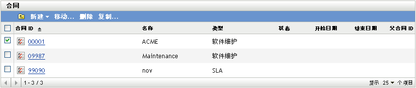 单击现有合同打开“合同”页。